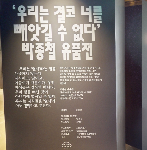 박종철 유품전 '우리는 결코 너를 빼앗길 수 없다' 및 상설전시